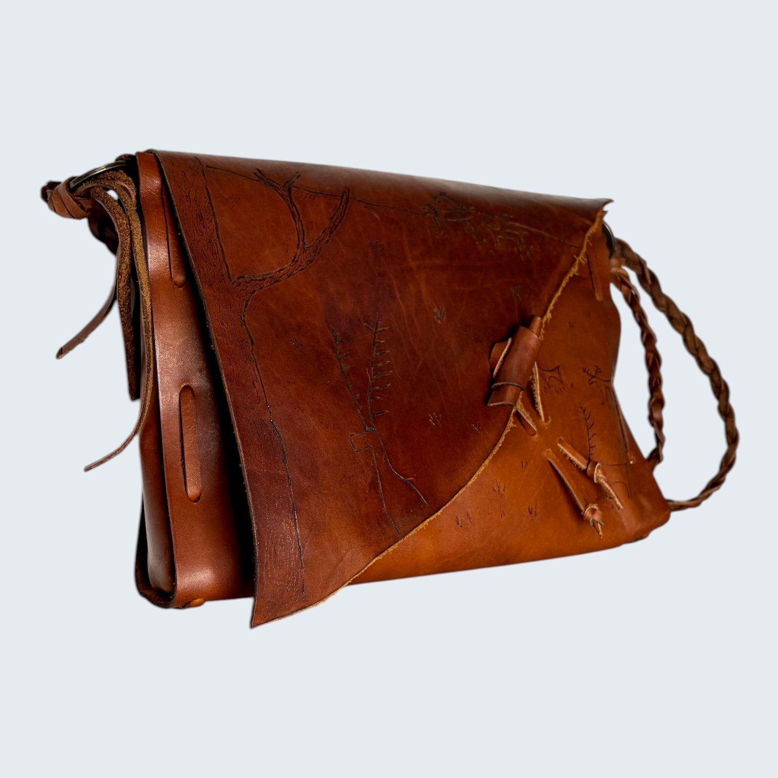 ტყავის ეთნო-ჩანთა “ხევსურეთი” – პეტროგლიფების გრავირებით ავთენტური, ძველებურ სტილში შეკერილი ხელნაკეთი ჩანთა, შთაგონებული ქართული მთიანეთის კულტურით. დამზადებულია پრემიუმ distress ტყავისგან, მინიმალური ფურნიტურით. ჩანთის წინა პანელზე გამოსახულია ამოკვეთილი ხევსურული პეტროგლიფები — უძველესი სიმბოლოები, რაც თითოეულ ეგზემპლარს უნიკალურს ხდის. იდეალური აქსესუარია მათთვის, ვინც აფასებს ისტორიას, ტრადიციებს და ეთნიკურ მოტივებს.